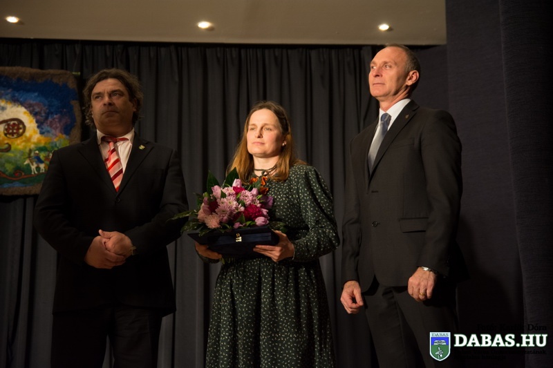 A rendezvény folytatásában Kőszegi Zoltán polgármester és Révész Károly, az Emberi Erőforrások Bizottság elnöke átadta a Dabas Kultúrájáért Karacsné Takács Éva-díjat, amelyben idén Solymosi Borbála népművész, nemezkészítő és népiének tanár részesült.