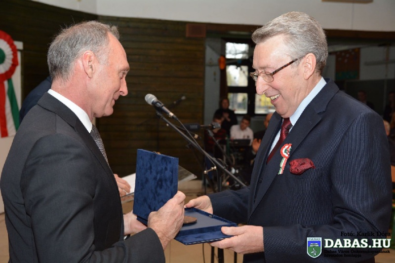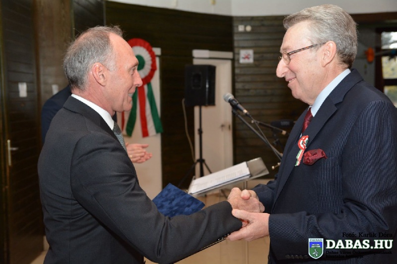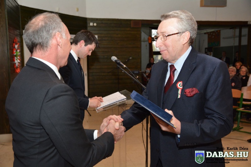 A rendezvény zárásaként Kőszegi Zoltán polgármester átadta a Dabas Város Díszpolgára kitüntető címet a település egy köztiszteletben álló, elismert és sokak által kedvelt polgárának, dr. Heneráry László gyógyszerésznek.